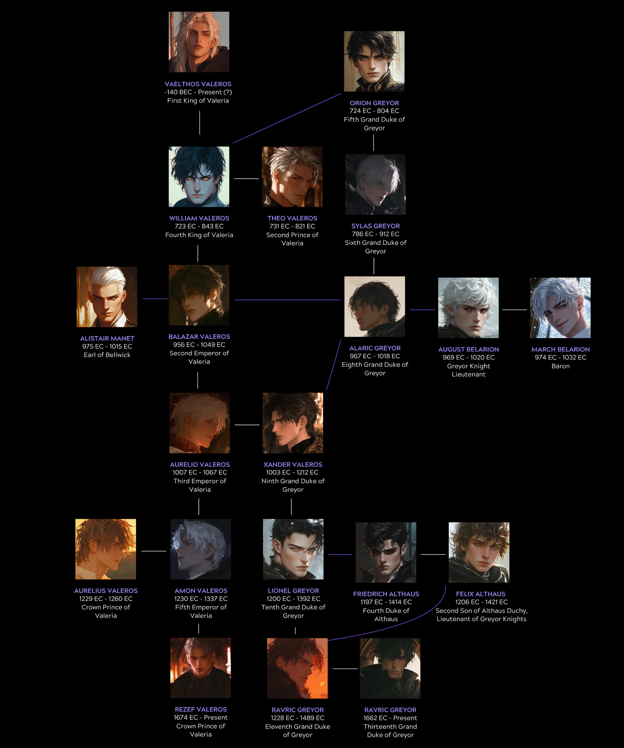The Kingdom of Valeria was established in the early 200s, though its transformation into a mighty empire occurred only centuries later. It lies in the far southwestern expanse of the Atherian Continent, stretching to the midpoint, where its reach halts just before the formidable Makalayan Mountains.While the kingdom is predominantly populated by demons, it also embraces a diverse array of other races, including humans, ogremen, beastmen, and many others. Valeria is regarded as one of the oldest and most venerable of Atheria’s realms, its history stretching back to ancient times, rivaled only by the illustrious Arkanium Empire.The people of Valeria, known as Valerians, are defined by their unwavering loyalty and an adherence to the highest standards of conduct. Their society is built upon a foundation of honor, discipline, and an unyielding commitment to the empire.The royal family, at the heart of Valeria’s power, descends from the esteemed Valeros lineage—a noble house of demons, with the occasional non-demonic ancestor. Their magical prowess is legendary, far surpassing that of any other bloodline in the land, and their influence remains unmatched throughout Atheria, ensuring the empire’s enduring strength and dominance.